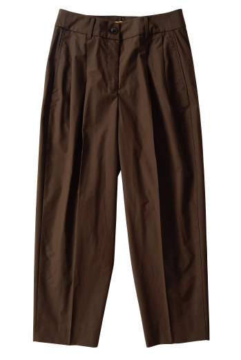 カジュアル過ぎずキレイ目な印象の、メンズライクなアイテムを女性らしく表現した2タックペグトップパンツ。