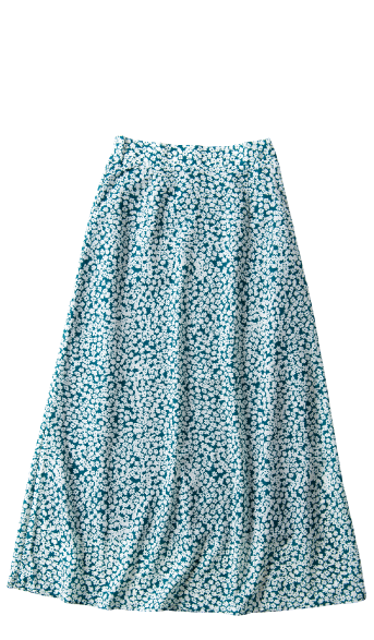ビンテージ調のフラワー柄が特徴的なロングスカートは、歩くたびに裾が華やかに揺れる主役スカート。