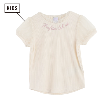 パイナップルプリントがかわいいTシャツ。ワンピースとの相性もバツグンです。