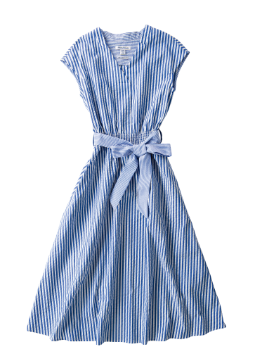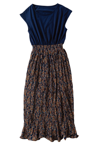 清涼感のあるカラーが夏らしい花柄ワンピース。 重ね着風のデザインで簡単にオシャレなコーデが完成します。