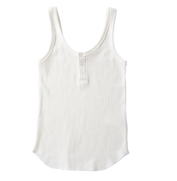 ストレッチのきいた白パンツで、動きやすさ◎。普段使いはもちろん、アクティブなアウトドアシーンでも快適に過ごせます。